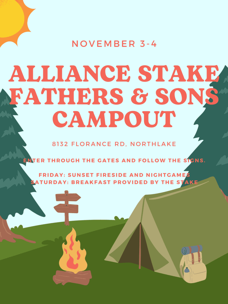 - Stake Father and Son’s Campout will be November 3rd and 4th – please let the Elders Quorum presidency know if you are attending, so they can provide a headcount to the Stake for breakfast